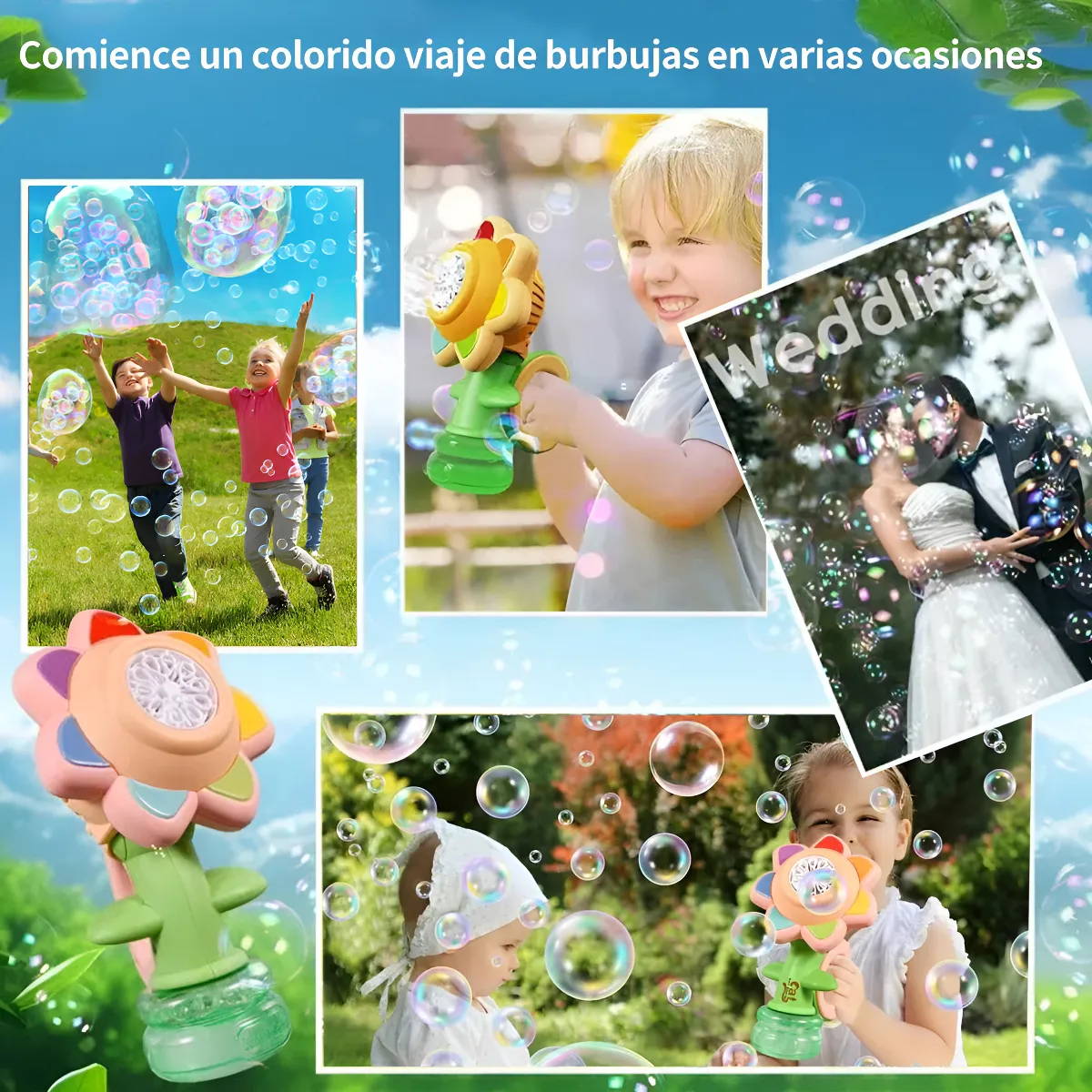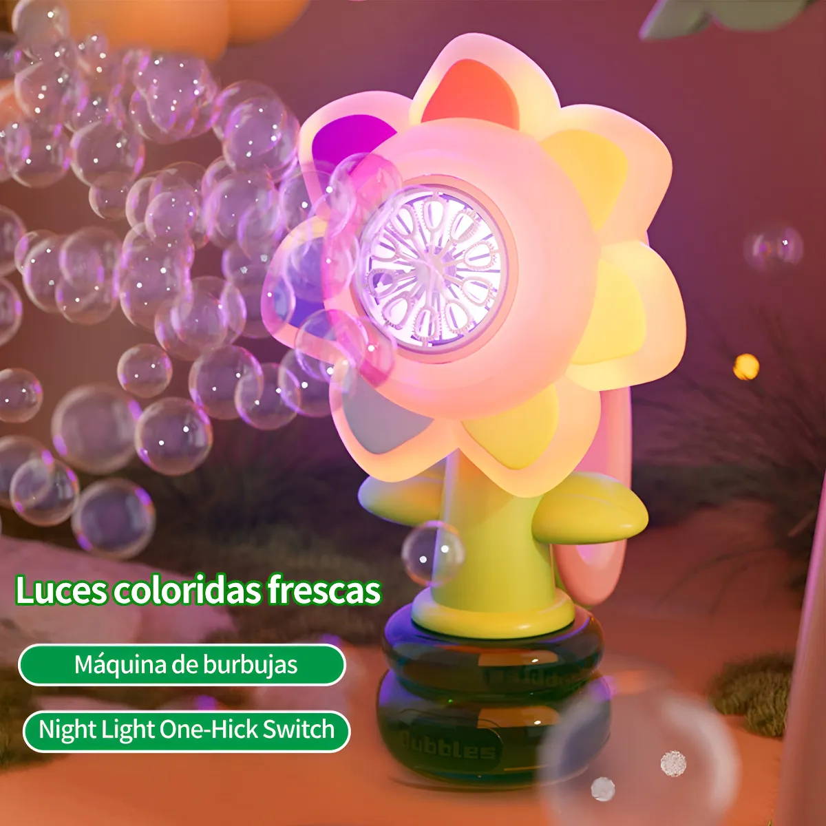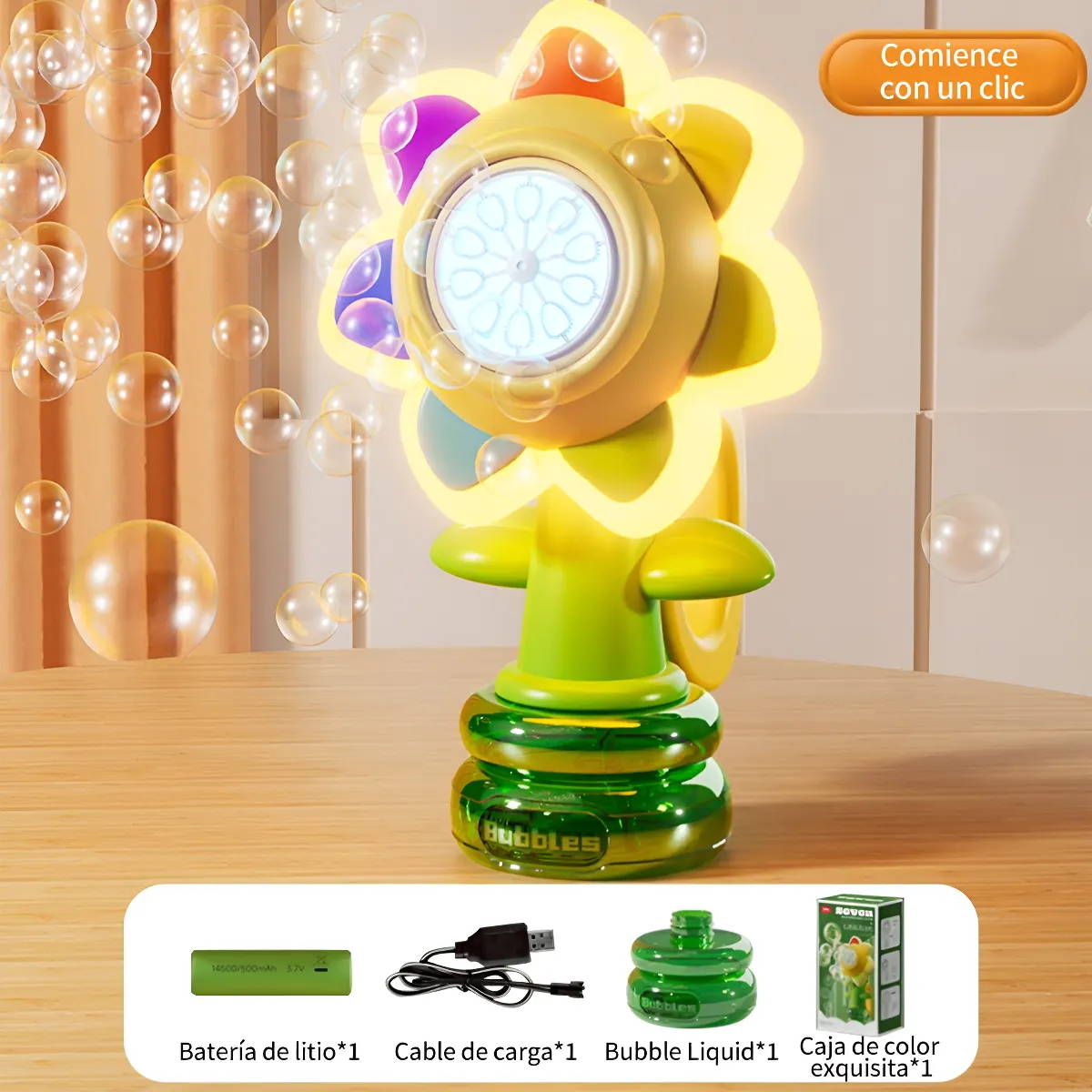 “Muy divertida y práctica. Produce burbujas automáticamente y el diseño de girasol con luz llama mucho la atención. Ideal para fiestas infantiles y juegos al aire libre.”