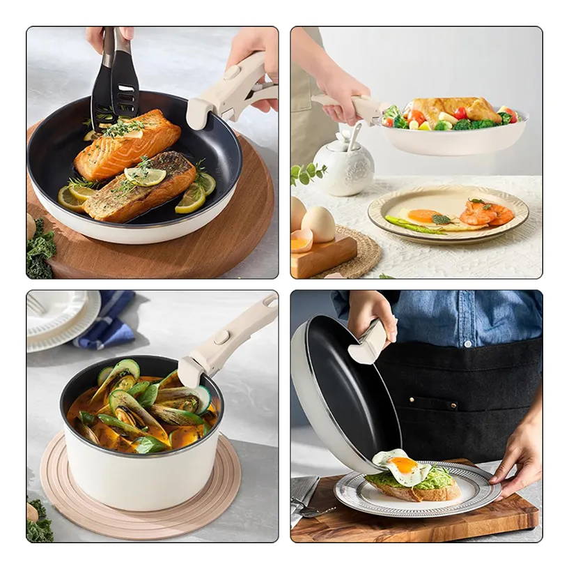“Mango desmontable muy funcional. Tiene buen agarre, es resistente al calor y se adapta perfectamente a diferentes ollas y sartenes. Ideal para ahorrar espacio y cocinar de forma más segura.”