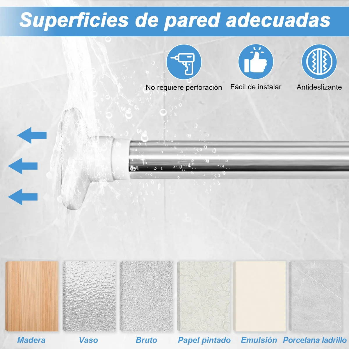 “Muy buena barra de cortina. La instalación es rápida y sin perforaciones, se ajusta perfectamente al espacio y se mantiene firme. El material se siente resistente y de buena calidad.”