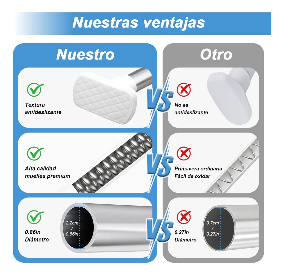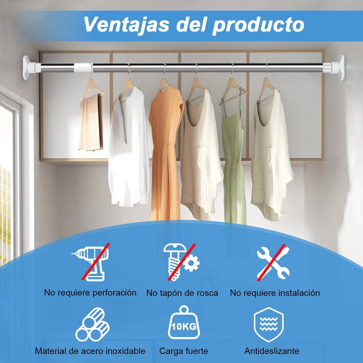 “¡Está súper buena esta barra! 😄 No tuve que taladrar nada y quedó bien firme desde el primer momento. La ajusté fácil y aguanta perfecto la cortina. Muy práctica y resistente.”