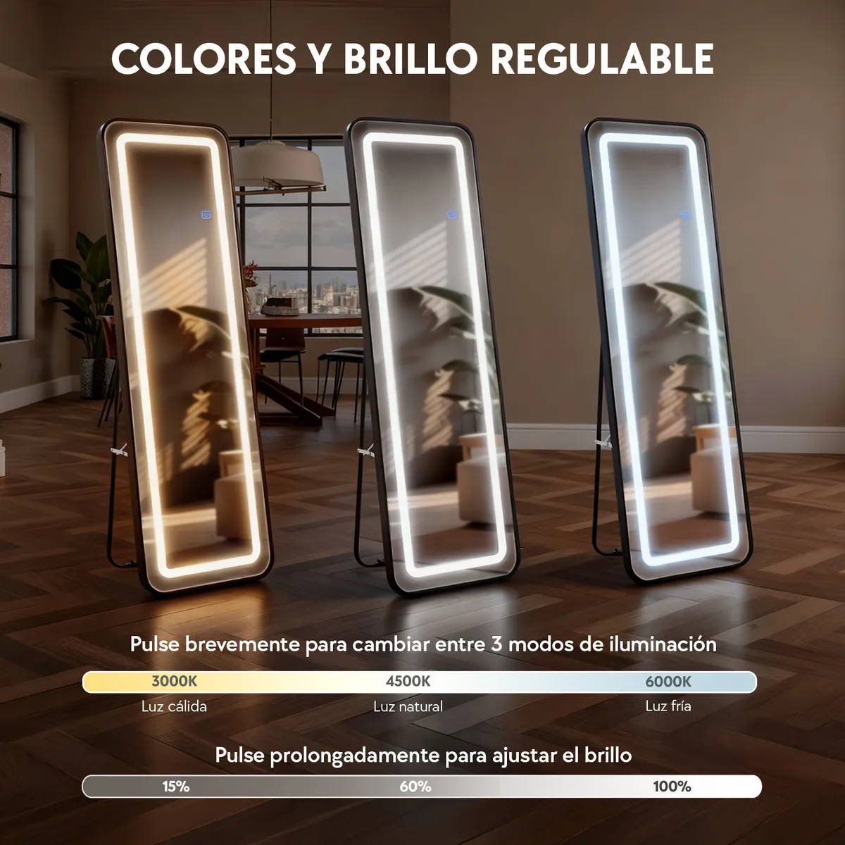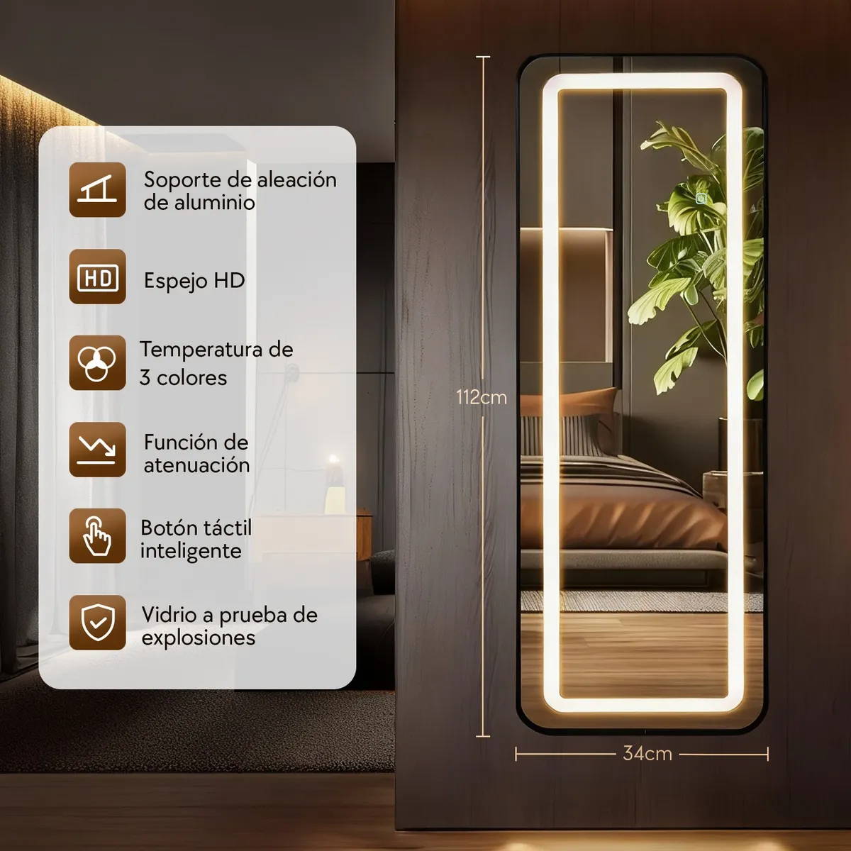 “¡Está padrísimo este espejo! 😍 La luz está bien chida para arreglarme por las mañanas y verlo todo completo. Se ve elegante y queda perfecto en mi cuarto.”