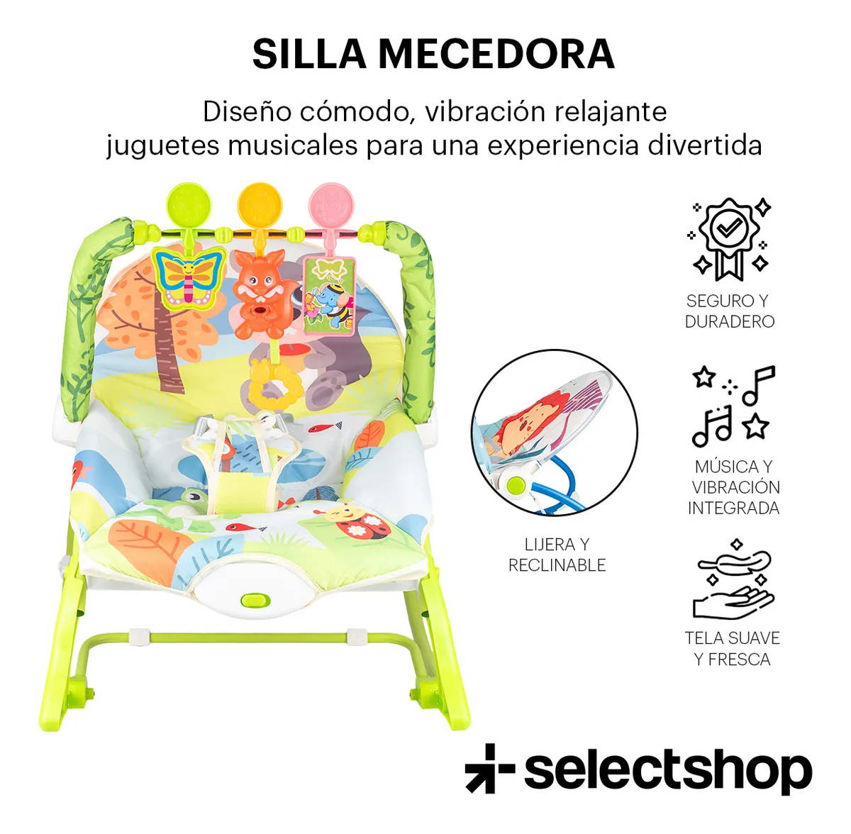 “Excelente silla mecedora para bebé. El balanceo automático y las melodías calmantes ayudan a relajar al bebé rápidamente. Se siente segura, bien acolchada y fácil de usar todos los días.”