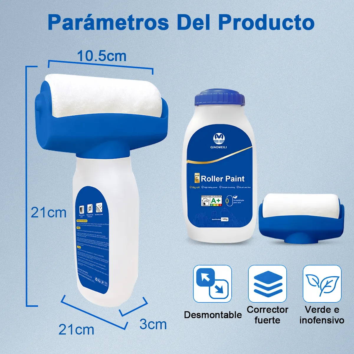“¡Está bien práctico este mini rodillo! 😄 Me ayudó a tapar rayones y manchas en la pared rapidísimo. No hace desorden y el acabado queda parejito. Muy buena compra.”